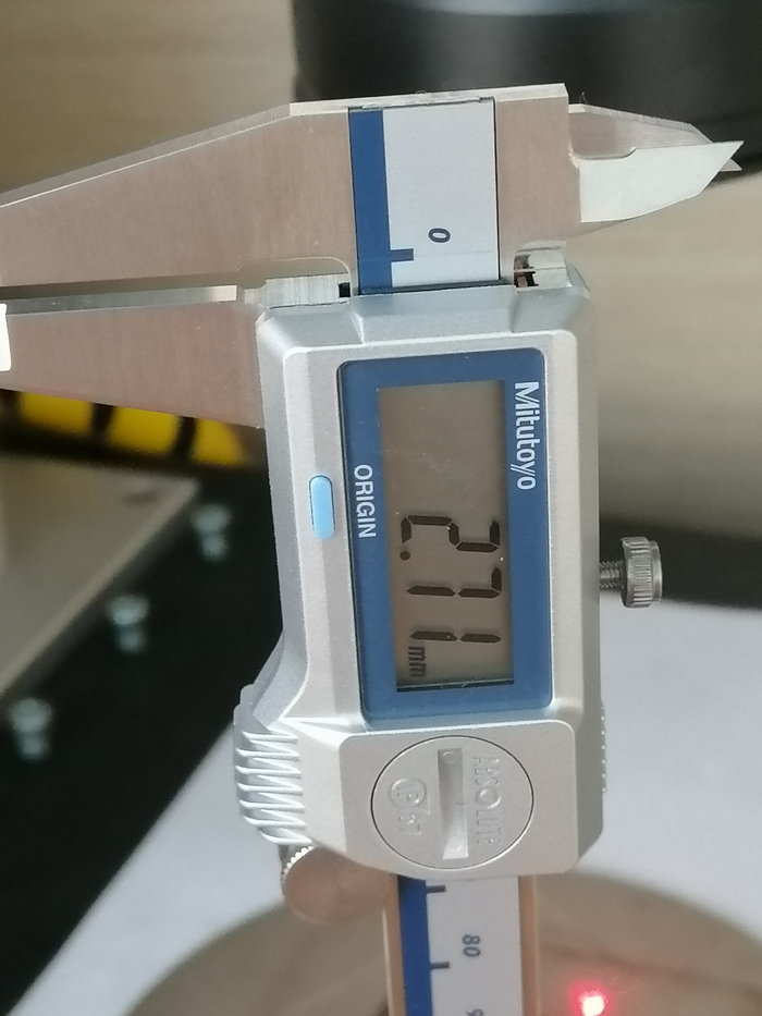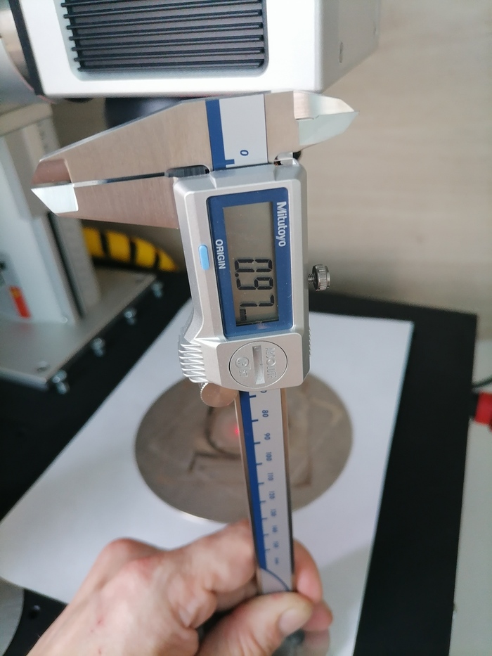 Следующий этап заключается в том, что я устанавливаю расстояние от головы лазера до заготовки меньше на то же расстояние, что глубина гравировки на нормальном режиме (а там сняло 0,97 мм).