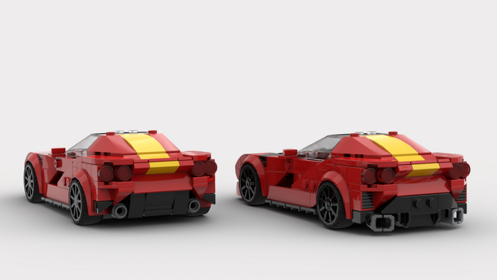 Помимо некоторых моментов в наборе Пагани мне еще задняя часть Феррари кажется слишком массивной. Я понимаю, что дизайнеру видимо очень хотелось сделать такую выхлопную систему, но все же :)