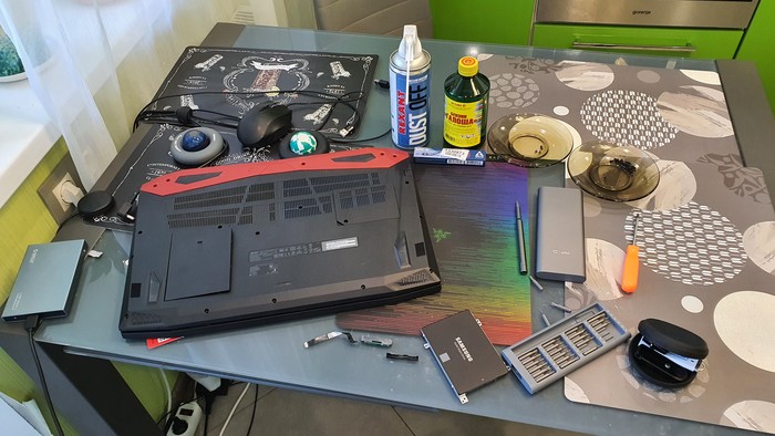 Приобрёл как то мамкин чукча ноутбук Acer Predator Helios 300 на i7 8750 и с gtx 1060 6gb на борту. Провел плановое мероприятие по замене накопителя (hdd на 500gb) на связку из samsung 860 evo (500gb 2.5 формата) и samsung 970 evo (250gb nvme m.2), а также замена термоинтерфейса на arctic cooling mx-4. Все прошло гладко, как и последующая установка с настройкой windows 10 и андервольтинг процессора. Порадовавшись сему действу, а также успокоив свою внутреннюю жабу результатом и минимальными чеками - чукча забыл про т/о на полтора года. Ну а что, проблем же не было, а лень была.