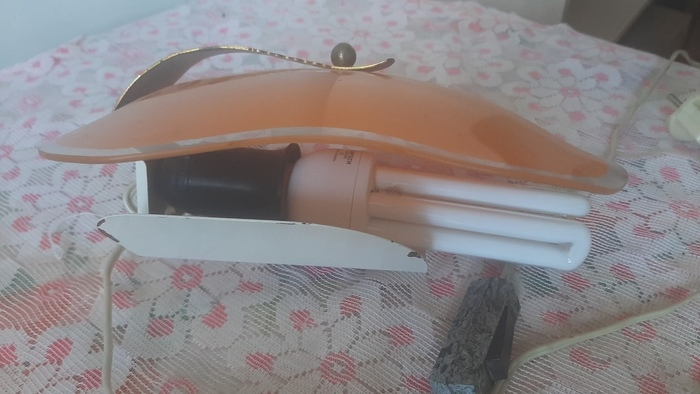 И вот, разбирая очередную коробку с хламом, я достал этот привет из детства. На удивление, за 40 лет скитаний по стране лампа не разбилась и не сломалась. Ничего не заржавело и не испортилось. Я вкрутил в патрон лампочку (энергосберегайку, при Союзе таких не было!), щёлкнул выключателем, и светильник зажёгся!