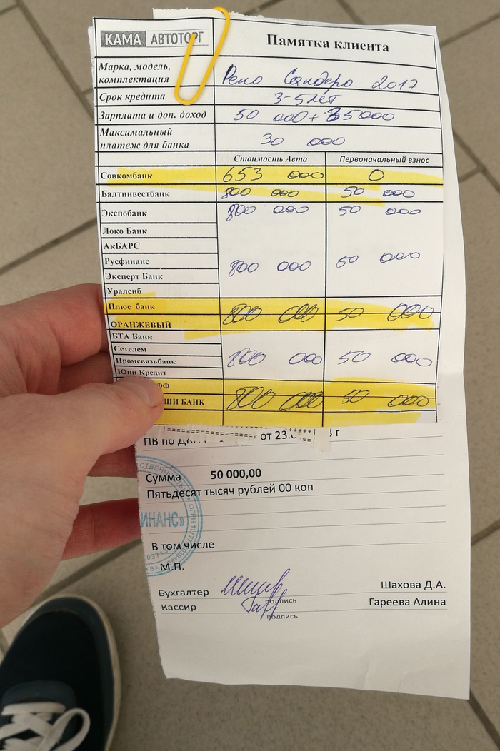 Провел он меня в кабинет, сделал договор купли продажи, где все нормально прописано, нет поводов для беспокойства. Рустам сказал внести предоплату в кассу, чтобы авто поставили в резерв для меня, а то много желающих. Внес в кассу с карты 50000 рублей. После внесения должны были подписать договор купли продажи, но он его отдал главному и тот пока все подписывает, мне нужно сходить подать заявку на автокредит.
