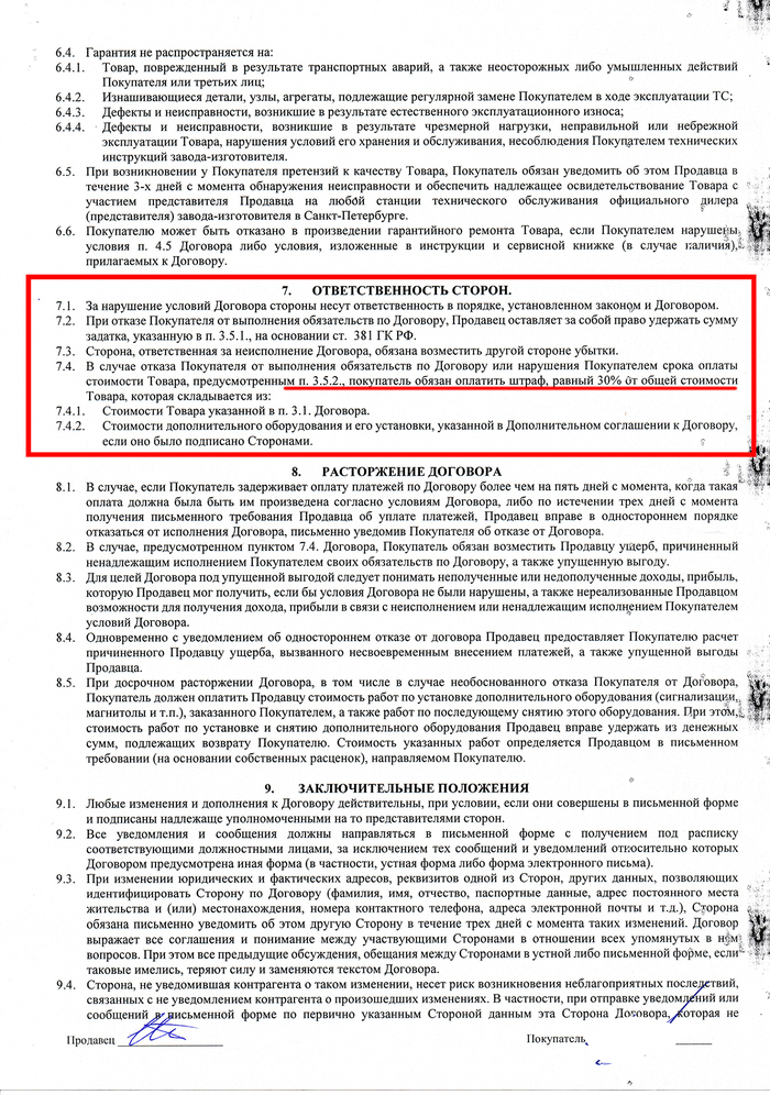 -забыть про первоначальный взнос 50000 рублей, из-за того, что нарушил пункт договора 7.4.