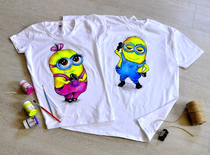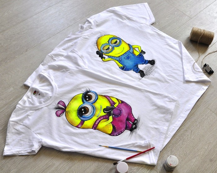 Данными мультяшными героями увлекаются не только дети. И что тут удивительного? Взрослые так погружаются в глубину свои будничных мыслей, что часто насыщенные цвета становятся менее заметными. Миньончики способны поднять настроение даже самому уверенному прагматическому зануде! Кстати, если вы не видели ни одной серии с их участием, то рекомендую немедленно исправлять ситуацию! Ручная роспись для моей коллеги-художницы. Переживала, как никогда.