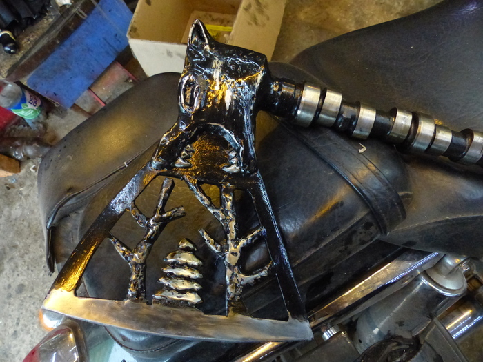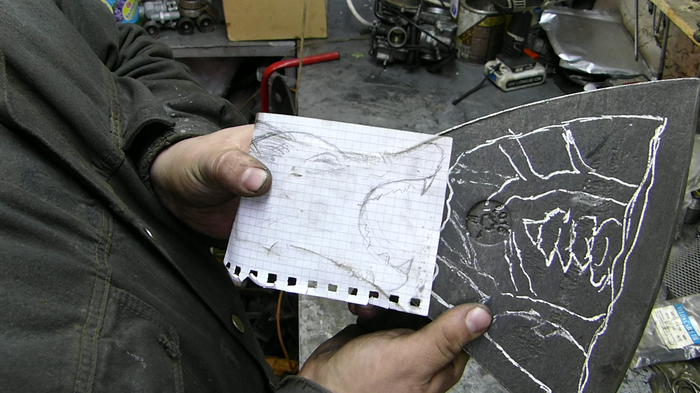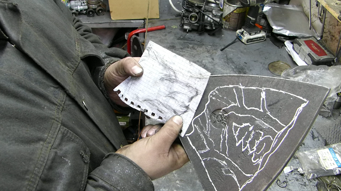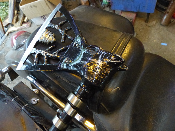 Вырезал из листовой стали голову по рисунку. и слегка приварил.