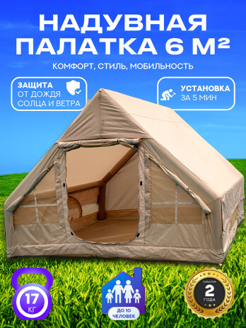 Палатка надувная 6,3 м — для группы из 6. С быстрой установкой за 3-5 минут. Подходит для кемпинга.