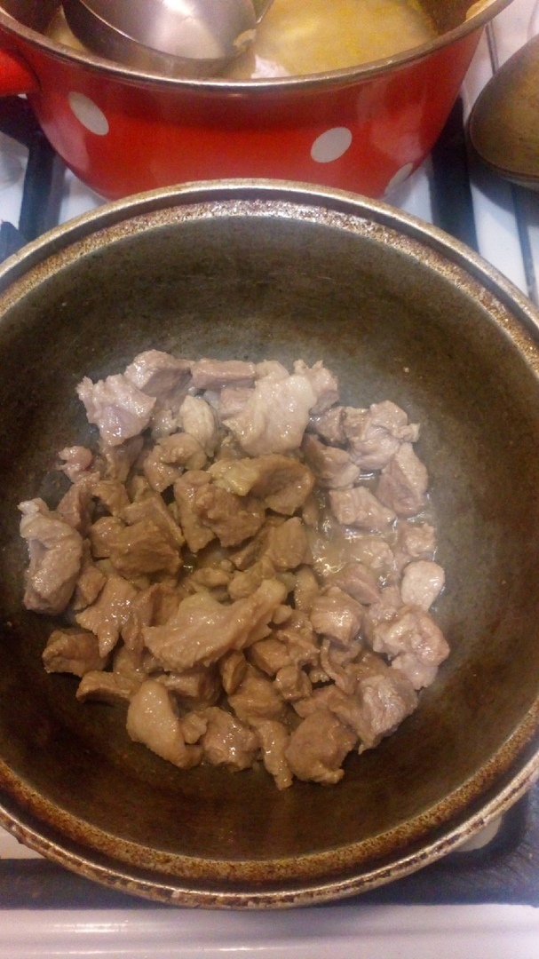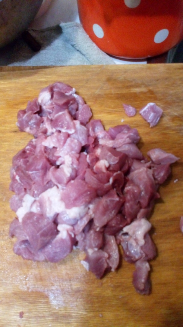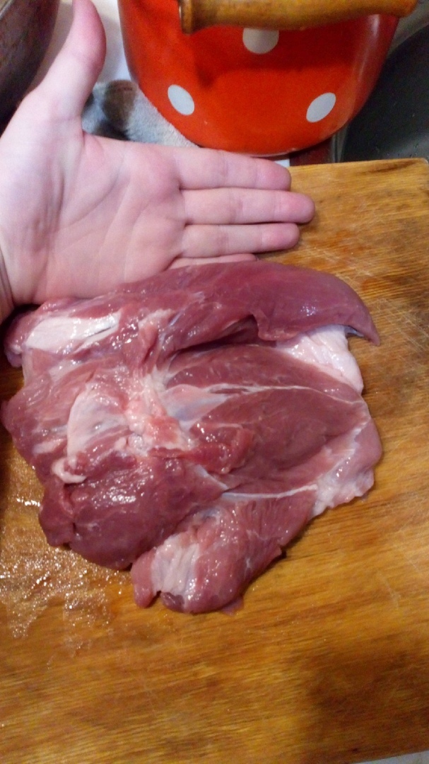 На ужин будем готовить мясо с подливой и гречку на гарнир, думаю гречку не надо рассказывать как готовить. А мясо тоже самое простое. Кусочек в пол килограмма вышел вот такого размера.