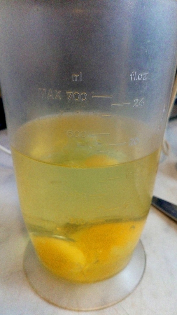 Опускаем погружной блендер и включаем. Далее процесс запечатлен на видео. Включаем блендер и ждем пока масса загустеет, если вдруг не загустела, добавляем еще одно яйцо и повторяем процедуру. Как только загустела, поднимаем потихоньку блендер. После чего добавляем соль и уксус по вкусу. На 400 мл я кладу пол чайной ложки соли без горки и полторы чайной ложки уксуса 9%. Уксус можно заменить лимонным соком, яблочным уксусом, винным. Также часто добавляю зелень и чеснок, тогда получается очень вкусный соус. Можно добавить всё, что вашей душеньке угодно. Маринованные огурцы, черный перец, оливки и прочее. Можно сделать на оливковом масле.