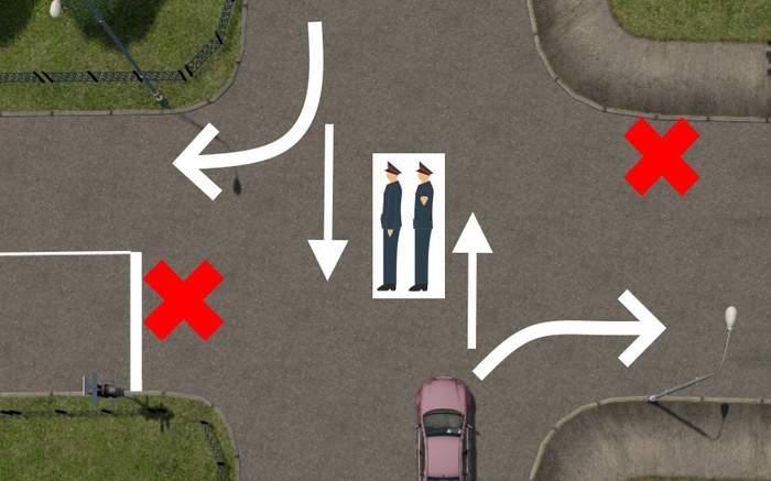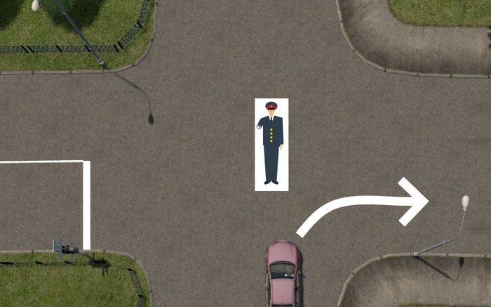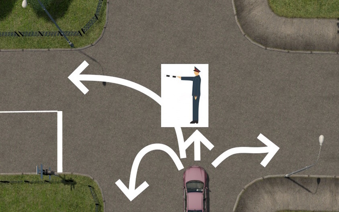 Если регулировщик стоит к вам правым или левым боком и у него руки вытянуты в стороны или опущены, то разрешается движение прямо или направо.