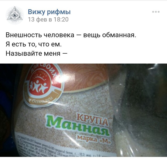 79 nadek67 Для тех, кто еще не видит рифмы 7 лет назад Показать полностью 5 Вижу рифму ВКонтакте Прикол Юмор Вывеска Этикетка Длиннопост
