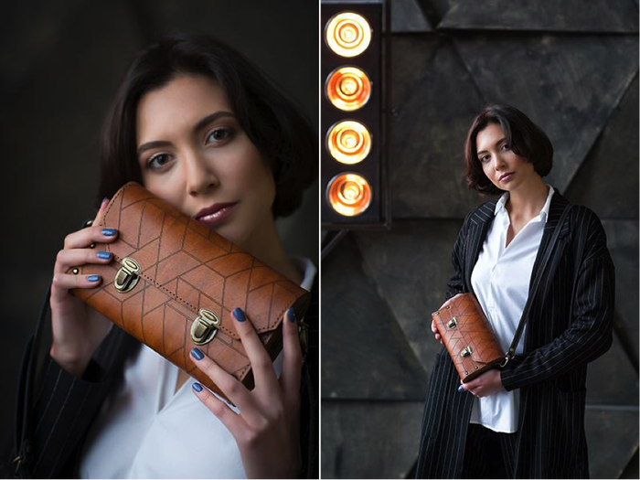 Маленькая кожаная сумка — это элегантный подарок, который пригодится каждой девушке. Она сделана из итальянской кожи и украшена дубовыми вставками. Кожа окрашена вручную и покрыта специальными средствами, поэтому непогода ей не страшна. Сумку можно носить на тонком наплечном ремешке, а можно снять его — получится клатч. идет съемный наплечный ремешок. Если вы настроены серьезно, рекомендуем дарить эту сумку вместе с похожими по дизайну часами TwinsWood.