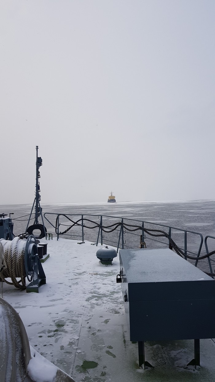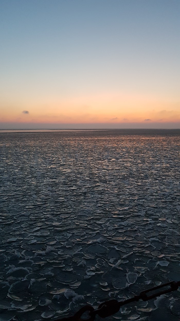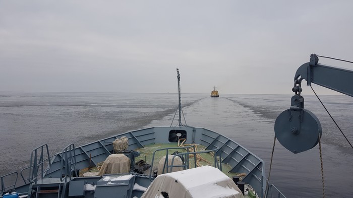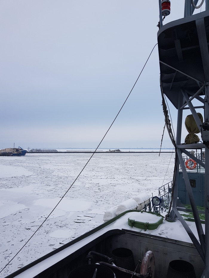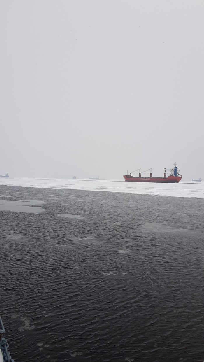 Ледокол дежурит неподалёку,снова затягивает льдами,температура сильно понизилась.