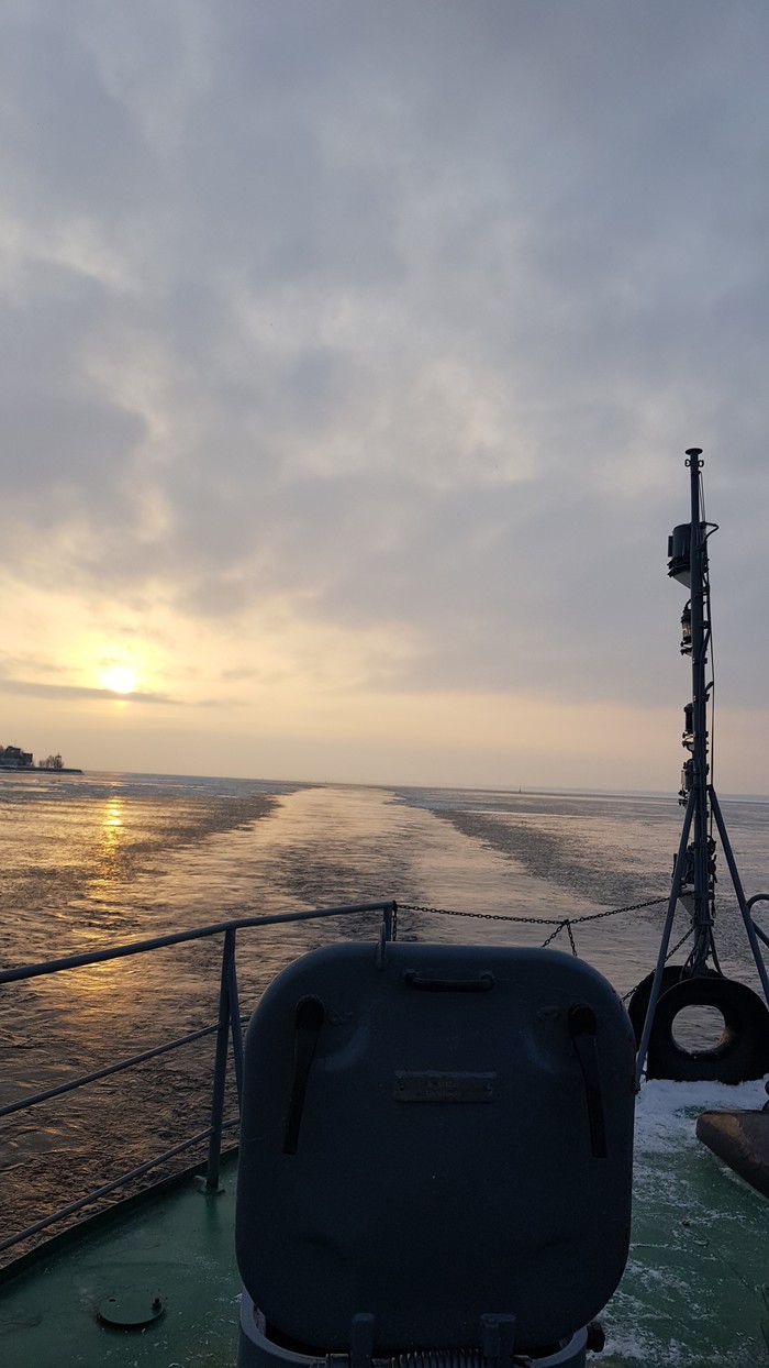 По правому борту остов Котлин (г.Кронштадт), а с кормы открывается потрясающий вид на восход.