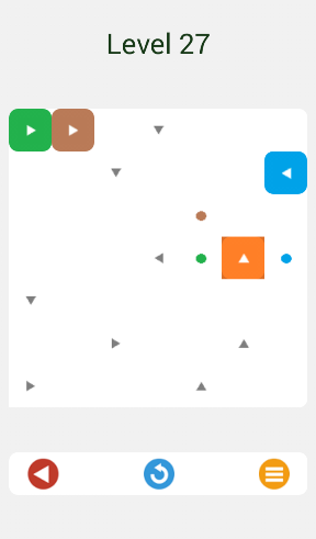 идея проста, но гениальна - для прохождения левела нужно все квадратики передвинуть на нужные местоположения, которые помечены кружками нужного цвета. при этом у кубиков задано направление движения и по тапу по кубику он двигается в определенном направлении. также кубики могут двигать друг друга. и позже добавляются клетки при прохождении которых кубик меняет направление движения.