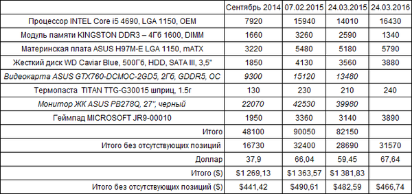 Наткнулся на пост годовалой давности от @Rammherz. Стало любопытно, как сейчас обстоят дела с ценами. И сколько тогда стоил доллар.