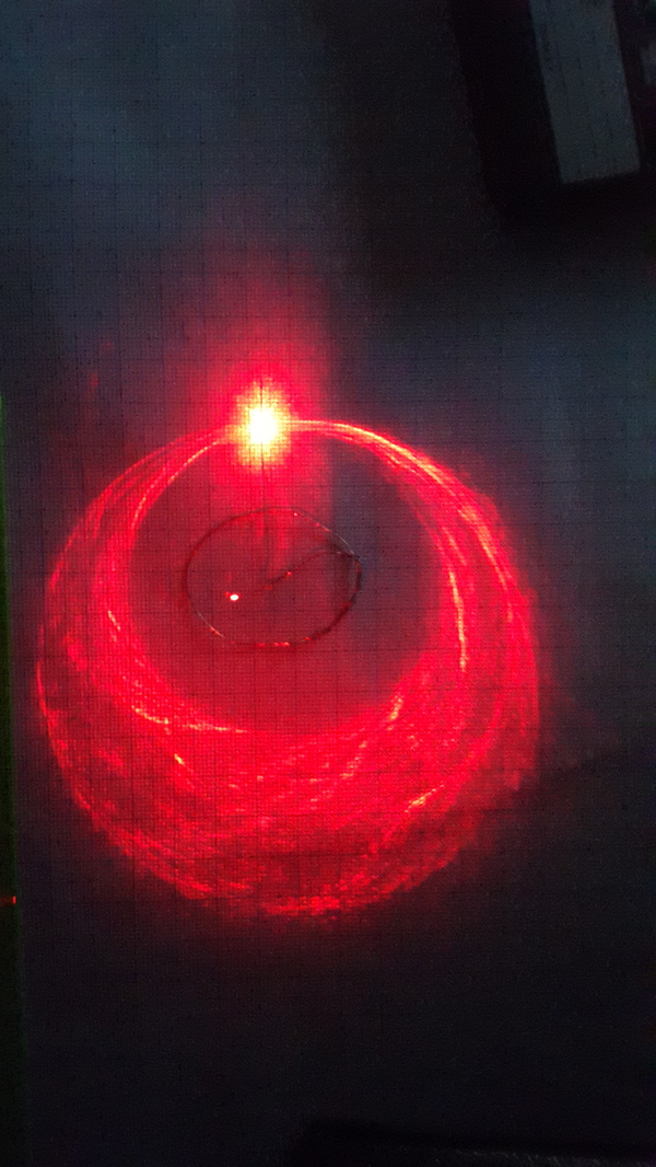 Если посветить лазерной указкой под углом к горизонту на ножку бокала/проволоку/ручку/любой, не очень толстый, цилиндрический предмет то мы получим нечто очень симпатичное и интересное!