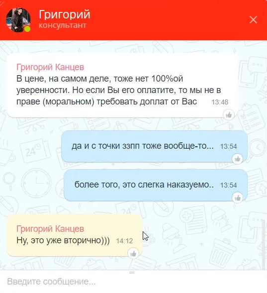 Уточнил у консультанта, не возникнет ли потом сложностей, если оплачу сейчас, он заверил, что нет.