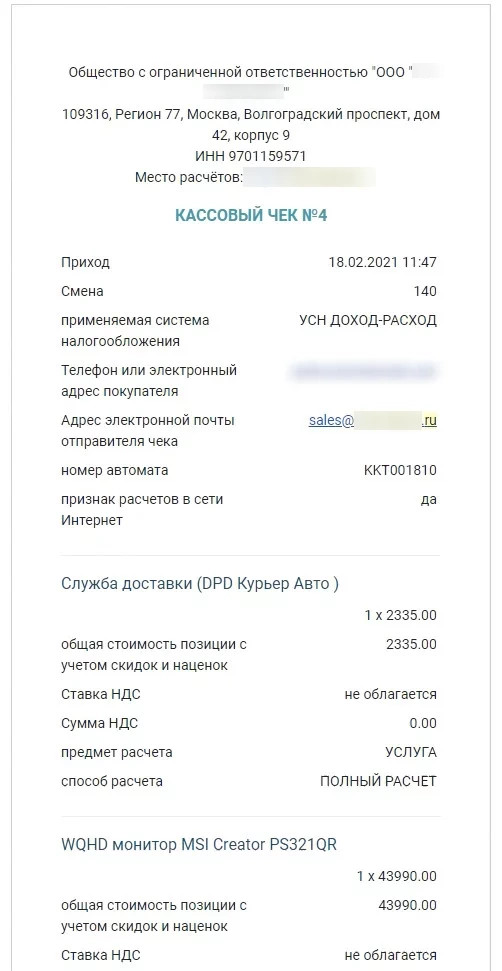 Начал настраиваться, что отменят покупку, что придётся ругаться, строчить жалобы итд итп. Когда через пару дней так и не позвонили, решил написать письмо основателю компании (Дмитрию Фундаменту). Он перезвонил буквально через 5 минут, заверил, что обязательно или отправят или предложат аналогичный или лучший вариант, но надо пока подождать, так как монитор на склад им ещё не поступил. В общем 13 марта действительно отправили, и 17 я уже его получил.
