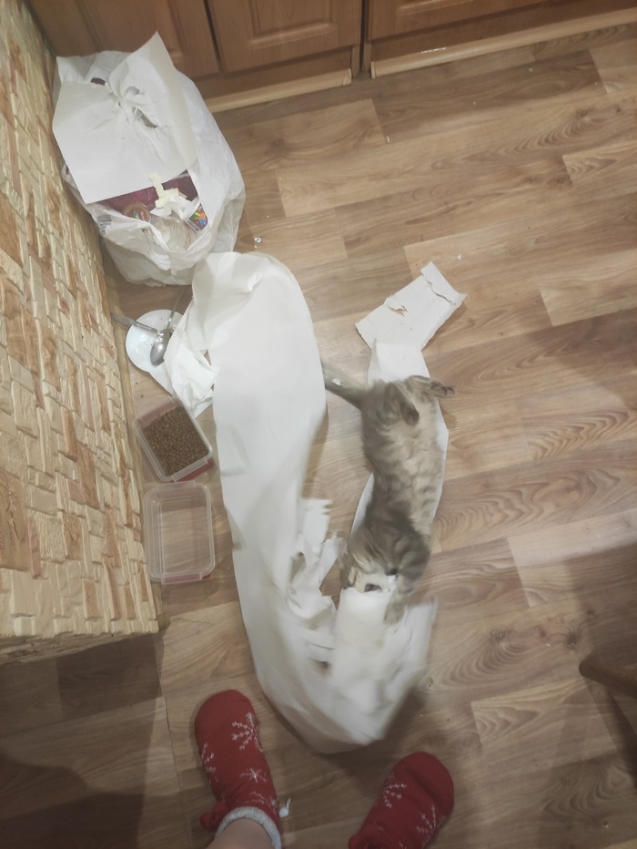 Наша кошка очень любознательная и очень любит громить все что не правильно лежит в квартире. Стараемся ничего не оставлять на видном месте, складывать по шкафам. Но иногда в ход идут даже лампа, подставка под обувь, цветы. А любимое развлечение это разматывать туалетную бумагу по всей квартире. Даже ее теперь стараемся прятать. Интересно, как такими маленькими лапками можно переворачивать и скидывать тяжёлые для кошки вещи лол