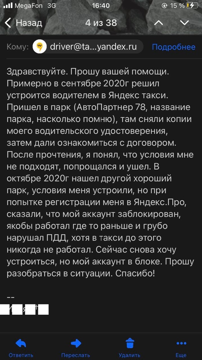 Ровно через месяц нашёл другой автопарк, в котором меня устроили условия, но при попытке регистрации меня как водителя в Яндекс.Про, стало ясно что под моей учётной записью работал кто-то другой и так же она была заблокирована за грубые нарушения ПДД, хотя в такси я до этого не работал.