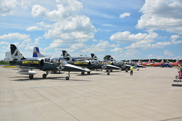 В воздухе звено L-39. Ввот нравится мне эта машина. Когда-то я даже латал на её старшем брате (L-29)