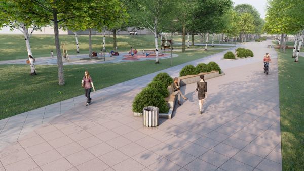 Здесь планируют разместить спортивную и детскую площадки с монолитным резиновым покрытием, обустроить площадку для пляжного волейбола. На главной аллее, всех площадках и прогулочных дорожках сделают освещение, на пляже оборудуют кабинки для переодевания. Также на набережной установят лавочки и урны.