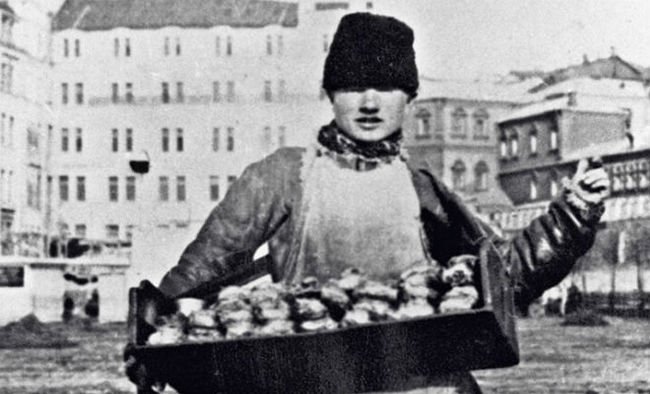 Разносчики фастфуда выбирали людные места для работы. У бань и вокзалов, у рынков всегда можно было встретить услужливого молодца, готового предложить быстрый перекус.