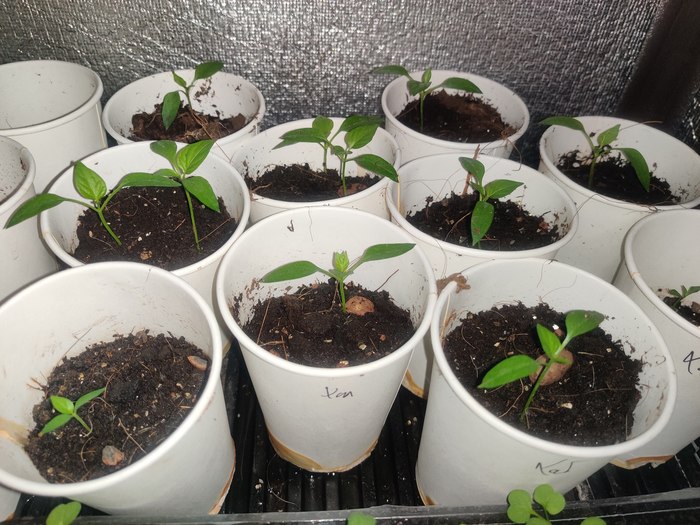 Сделал дома мини теплицу из стелажа, высадил Хабанеро, 7POT, Bhut, Халапенье и семена из приправы со Шри-Ланки. Все растет, ждем пересадки.