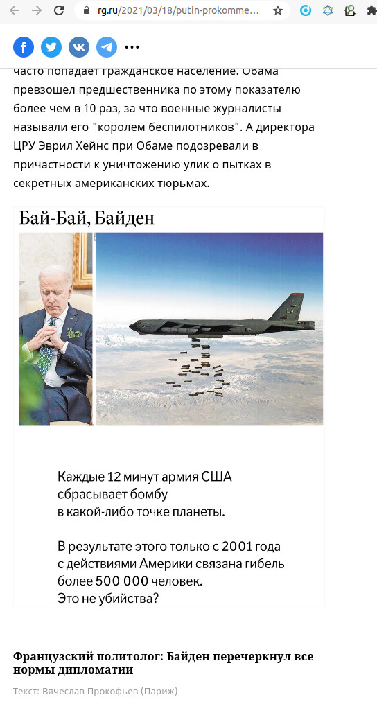 Иду тут мимо стенда "Российской газеты", проходят там мои маршруты. Вижу громкий заголовок: "Бай-бай, Байден". Думаю: а почему бы не поделиться этим с прекрасным сообществом пикабушников? Прикольно же.