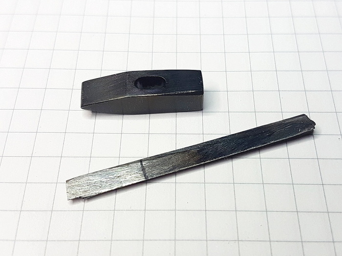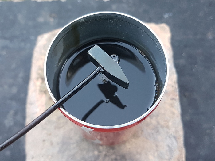После того как головка молотка готова, пробуем придать ей "радикально чёрный цвет" при помощи воронения.