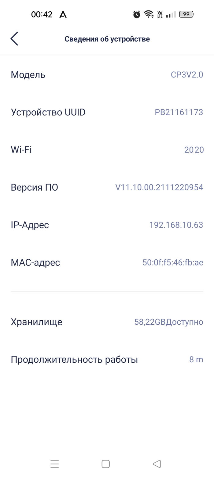 То есть камера заработала с первого раза, это мне понравилось. Сведения об устройстве привожу для информации. У меня была довольно свежая прошивка:
