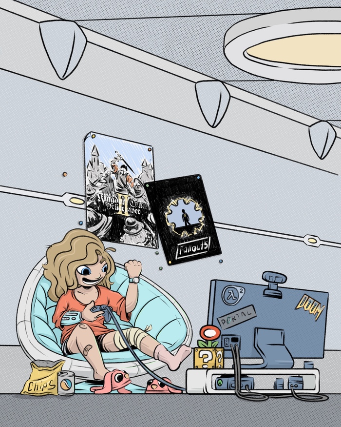 Главная героиня, Кис — не просто исследователь. Это девушка, которая постоянно ищет ответы на вопросы, она любознательная и веселая. А иногда она грустит, бывает ленивой и хочет на ручки. Ничего человеческого ей не чуждо! Одновременно с этим, Кис старается жить полной жизнью. Она любит видеоигры, фильмы и вкусно поесть. Сейчас например, проходит Kingdom Come: Deliverance II и ей очень нравится! Еще она обожает пересматривать старые фильмы про космос, хотя знает, что они далеки от реальности.