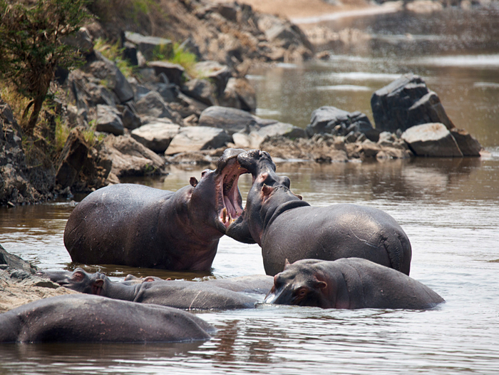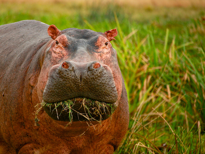 Гиппопотам — вот настоящая гроза Африки! Многотонная конструкция из бронированной кожи, мощи и свирепства занимает второе место по габаритам после слона. Точнее, делит его с носорогом. Полуметровые бивни и забрало, способное разъезжаться до состояния развёрнутого угла — не политика устрашения. Скорее, инструменты абсолютного бесстрашия. Учитывая скверность характера в бездействии они не залёживаются. И лучше человеку знать наверняка об особенностях психики сухопутного большегруза.