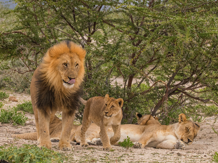 Но у царя зверей бывает и голодное настроение. Если львицы не накормят султана досыта, то любой котёнок может попасть под горячую лапу властителя.