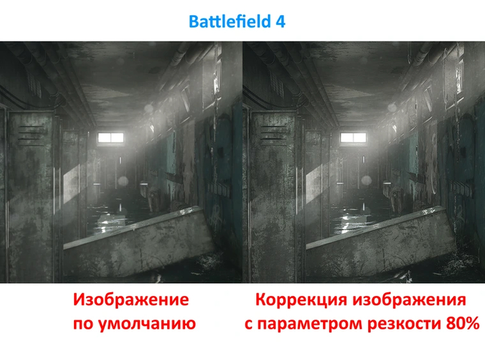 Включение коррекции изображения позволяет настраивать уровень повышения резкости графики. Диапазон регулировки начинается от условных 10 %, позволяя установить значение на свой вкус.
