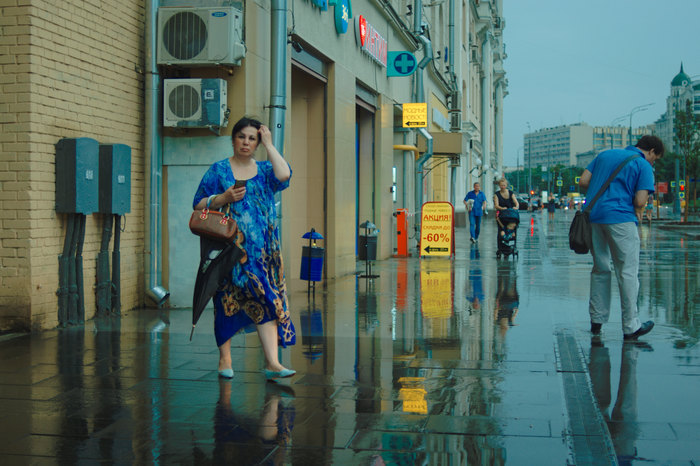 Мы гуляли по Москве и попали под дождь.
