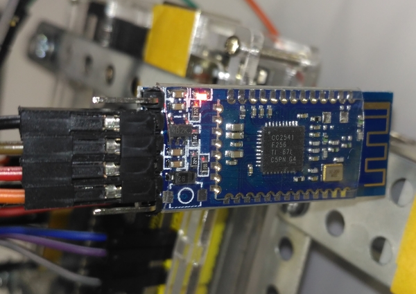 Ардуинка и телефон общаются между собой через Bluetooth модуль HM-10, а точнее китайский аналог CC2541. Связь на расстоянии 100 метров стабильная, но приторможенная, с близкого расстояния всё норм.