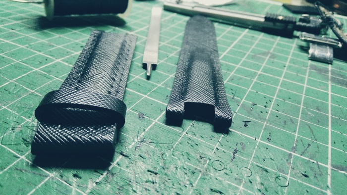 Кожа толшиной 1.3 мм. пришлось утоньшать её до 0.9 мм., что бы хорошо обтянуть подиум.