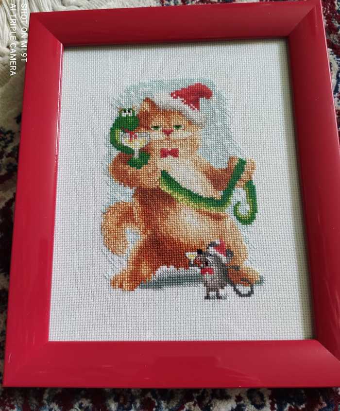 Дальше вышитая картина с котиком в очень классной рамке. И опять попадание, займет место в детской комнате внука.