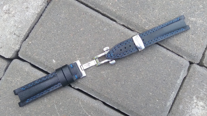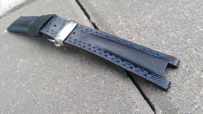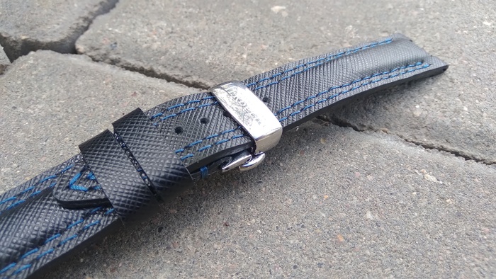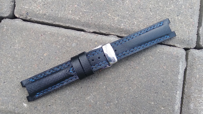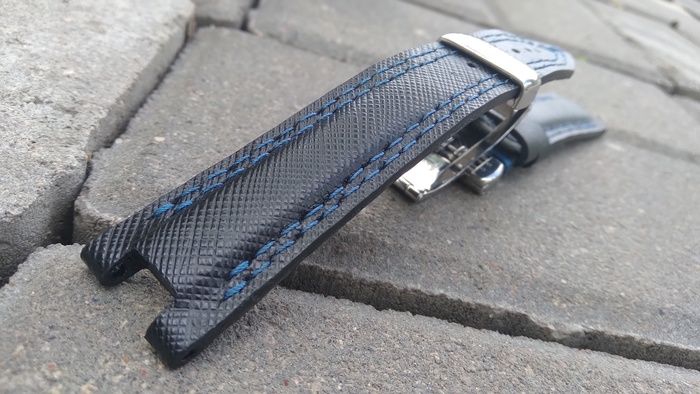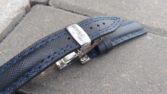 Ремешок изготовлен из кожи Сафьяно, черного цвета.