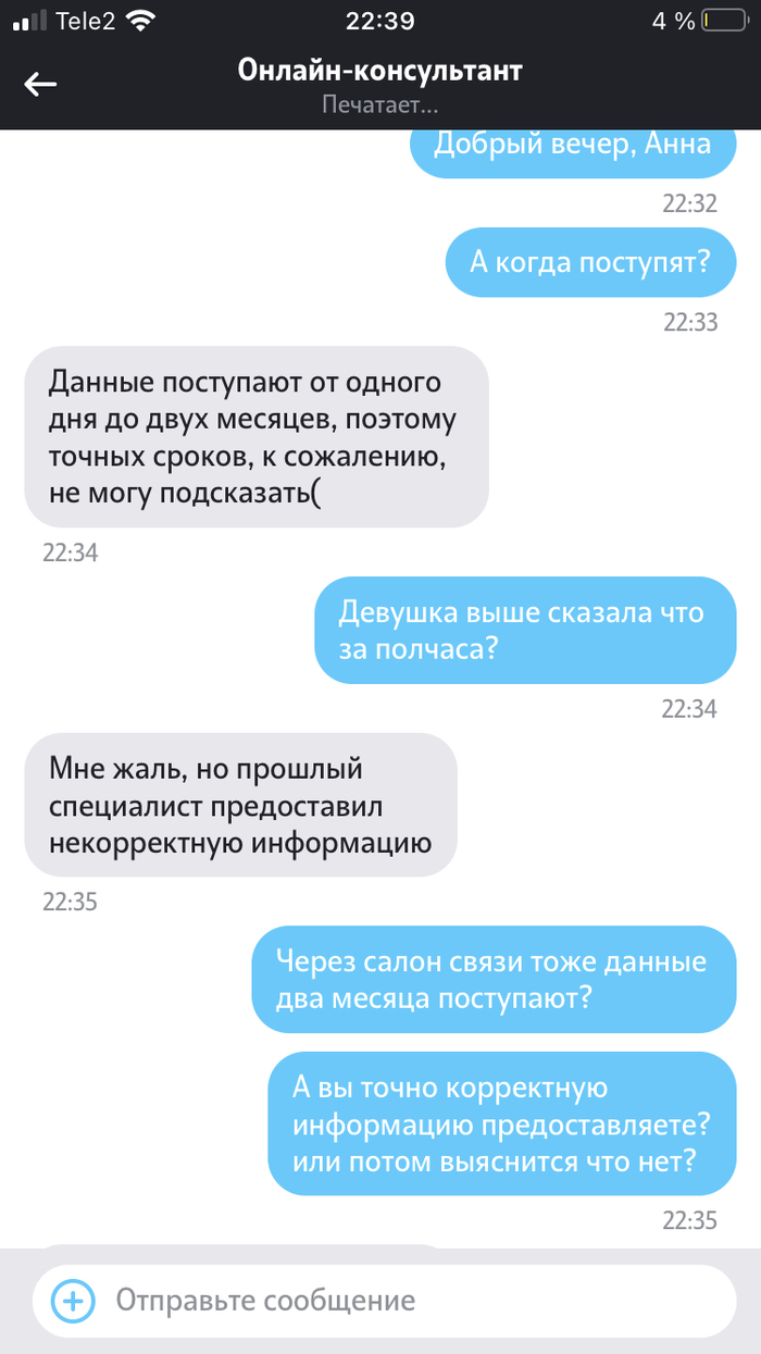 Теле 2 у меня к вам вопрос, вы там чему учите операторов и через сколько в итоге подтвердите мои данные?