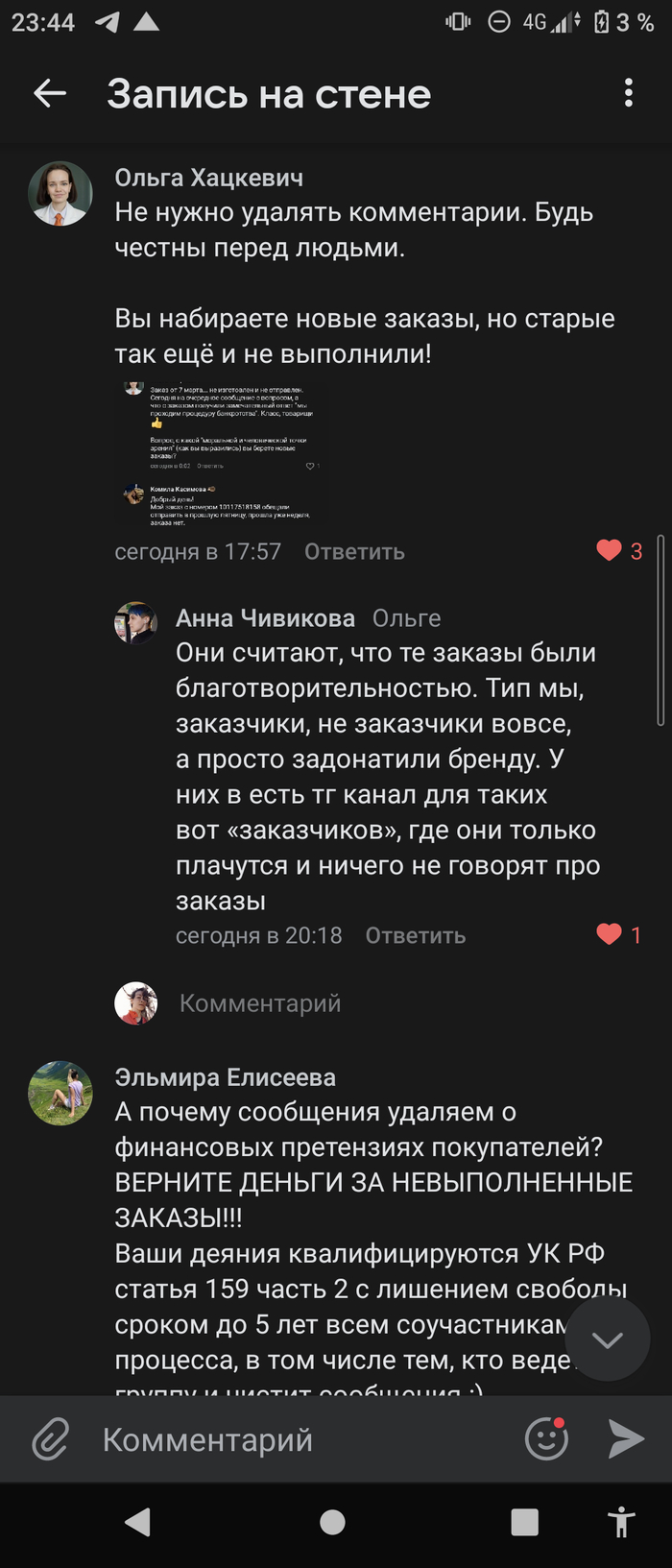 И я не одна такая. В их канале "обосрались stoboy" уже 99 подписчиков. Некоторые клиенты ждут заказов ещё с марта.