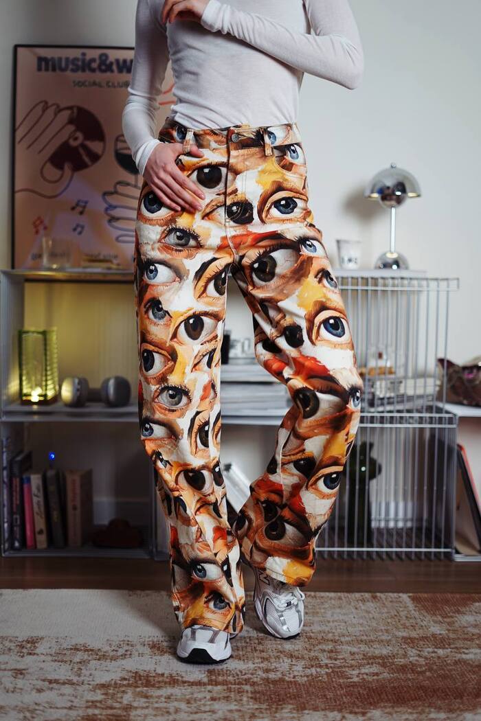 В апреле у фирмы вышел дроп - джинсы с различными принтами. Мне в душу запали с глазами.