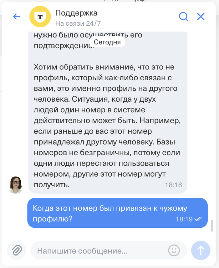 Написал в поддержку. Если кратко: да, так получилось, что ваш номер привязан к другому человеку тоже, были ли операции с вашим номером сказать не можем, когда его привязали тоже.