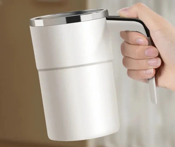 Умная термокружка с функцией автоматического перемешивания напитков одним нажатием. Отличный выбор для кофе с молоком, какао или коктейлей. Работает от батареек или USB. Удобная крышка предотвращает проливание при переноске.