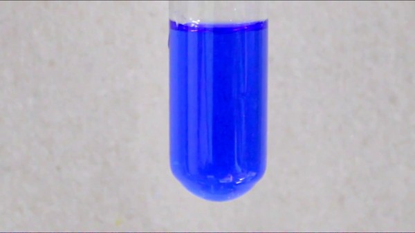 Получилось, что еще мы сможем предсказать? Ну если добавить к купоросу много аммиака, мы должны будем сдвинуть поглощаемый свет в другую сторону, поглощался оранжевый, а будет желтый, раствор должен стать сине-фиолетовым, что мы и наблюдаем