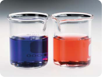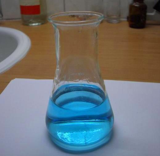 Как пример, раствор медного купороса голубого цвета