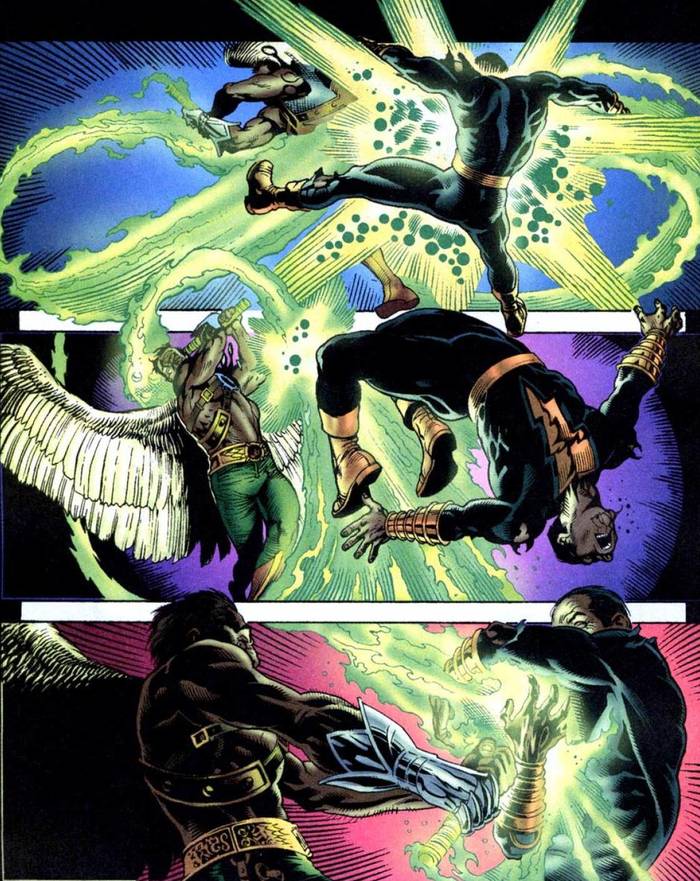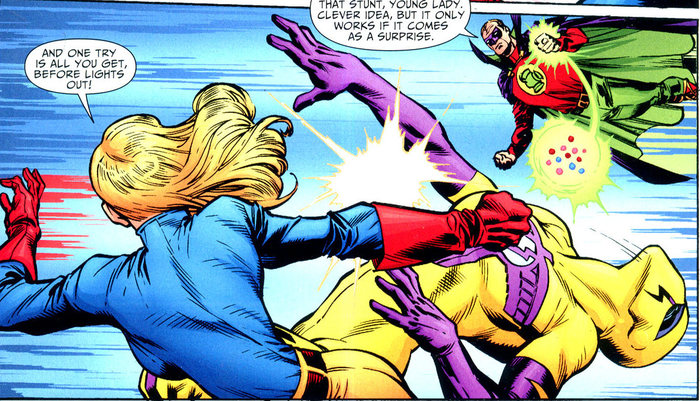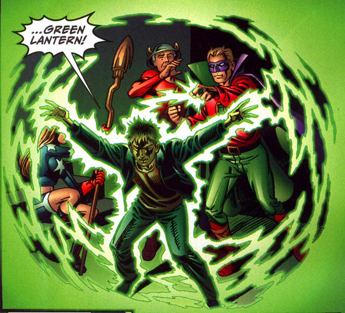 И при всей этой силе, которая при неосторожном применении может ухайдокать всю солнечную систему, Алан уязвим к дереву. Он может выдержать (и выдерживал) дождь из ядерных бомб, и помереть от осинового колышка в сердце или удара битой по затылку. Вот так. Комиксы DC знамениты тем, что наделяют сильных персонажей странными уязвимостями.