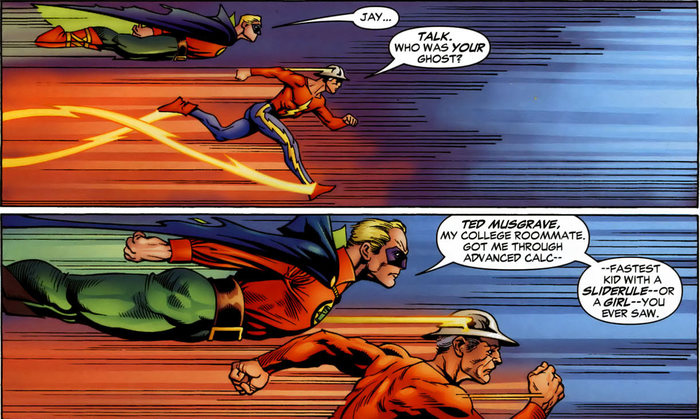 Скорость Алана позволяет ему не только мгновенно реагировать на опасность (впрочем, эта способность часто подводит, как и любая супер-реакция в комиксах), но и поддерживать ненапряжный разговор с Джеем Гарриком (первым Флэшем) на его скорости. А ещё он умеет входить в гиперпространство и пересекать сотни световых лет за считанные мгновения.