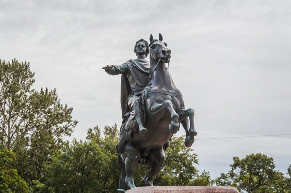 Екатерина II задумала увековечить деда мужа в памяти народа и решила ему поставить памятник, да так, чтоб он с радостью смотрел на плод своей любви, на город, который назвали в его честь, и на его любимую часть в виде Васильевского острова. Для реализации этих планов по рекомендации Голицина из Франции выписали залетного скульптора, а его итоговую работу водрузили на гром-камень.