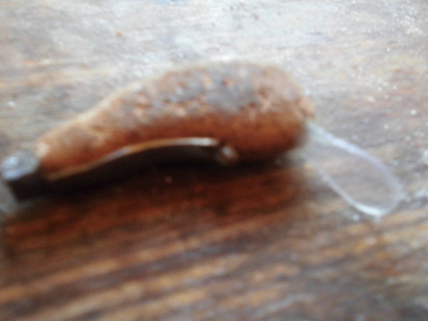 Далее нужна была лопатка для воблера. Её я выжег советским выжигателем который я привёз ещё с Латвии в 95ом из коробки от касеты "голосуй или проиграешь". У него не было нагревательного элемента и его я заменил гитарной струной. Как видите кожух я тоже потерял.